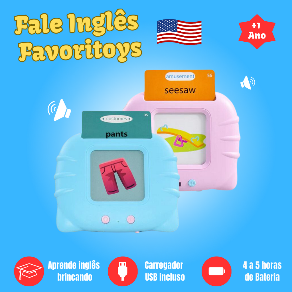 Com o Fale Inglês da Favoritoys, o aprendizado do inglês se torna uma experiência envolvente e prazerosa para o seu filho. Junte-se a ele/a nessa jornada educativa, investindo desde pequeno para ele ter um futuro brilhante!